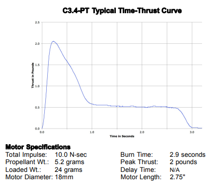 The C3.4T-P is a Plugged motor reload. Plugged reload kits do not utilize a motor-actuated delay or ejection charge. Plugged motors must be used in conjunction with a timer, altimeter or radio-activated recovery system. This motor was designed for R/C rocket gliders.
